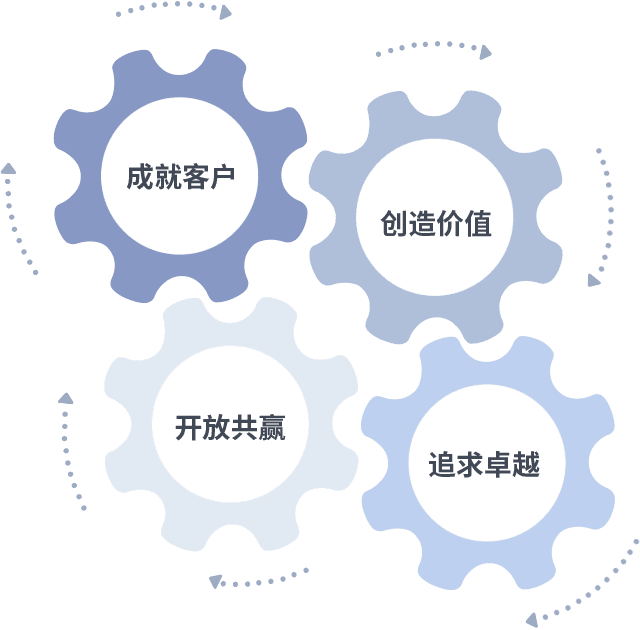 成就客户是一切决策的出发点,,,,创造价值是衡量所有工作的标准,,,追求卓越是尊龙凯时人生就搏做事做人的态度,,,,开放共赢是尊龙凯时人生就搏的格局也是最终的结果。。。。价值观的齿轮环环相扣,,推动着组织里的每个人不断向前。。